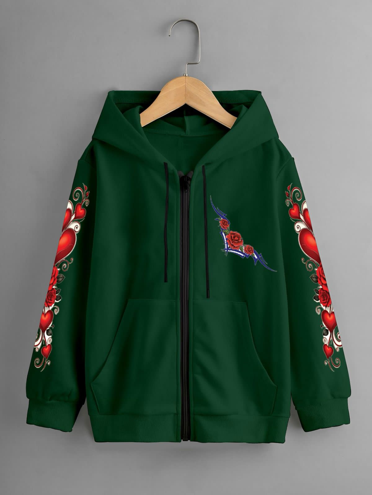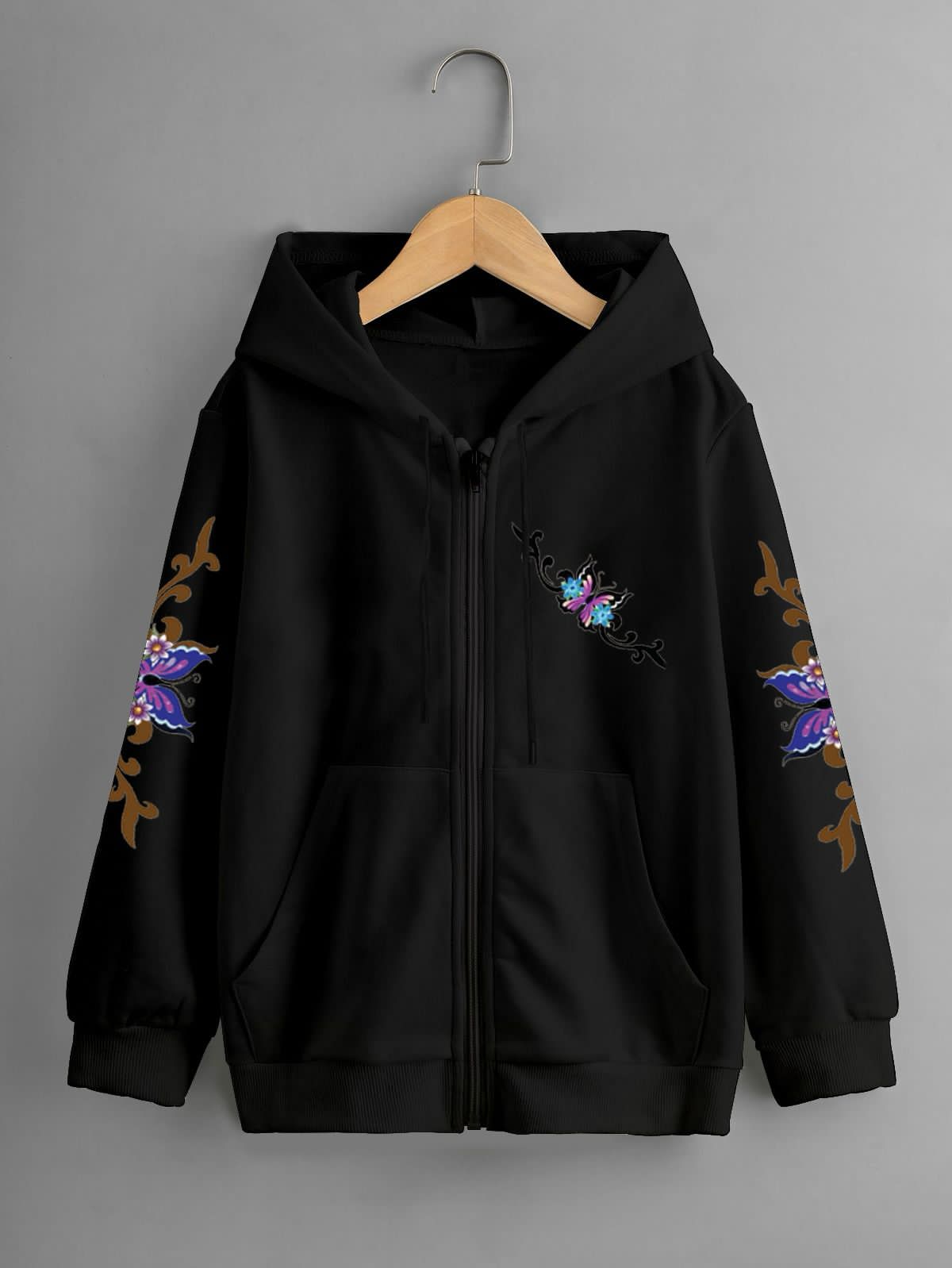 GIRLS PRINTED ZIPPER HOODIE